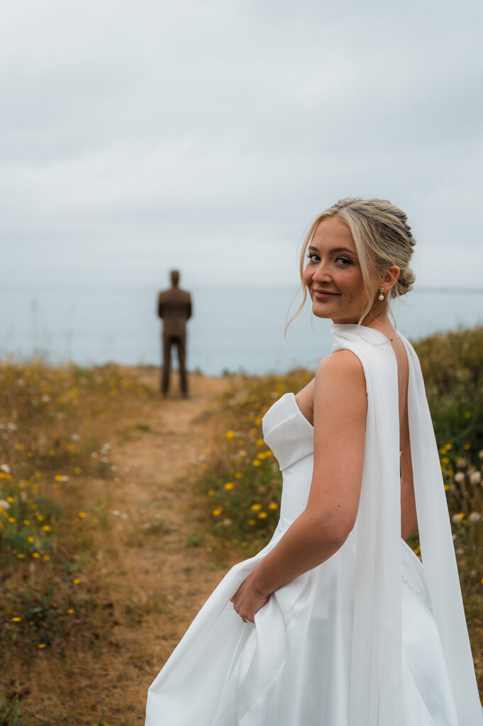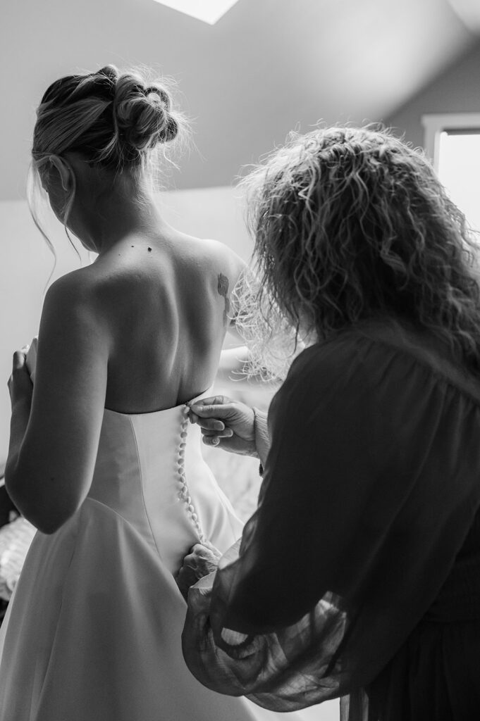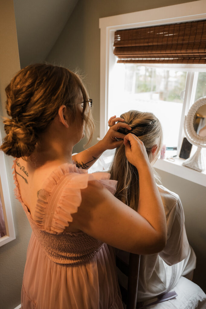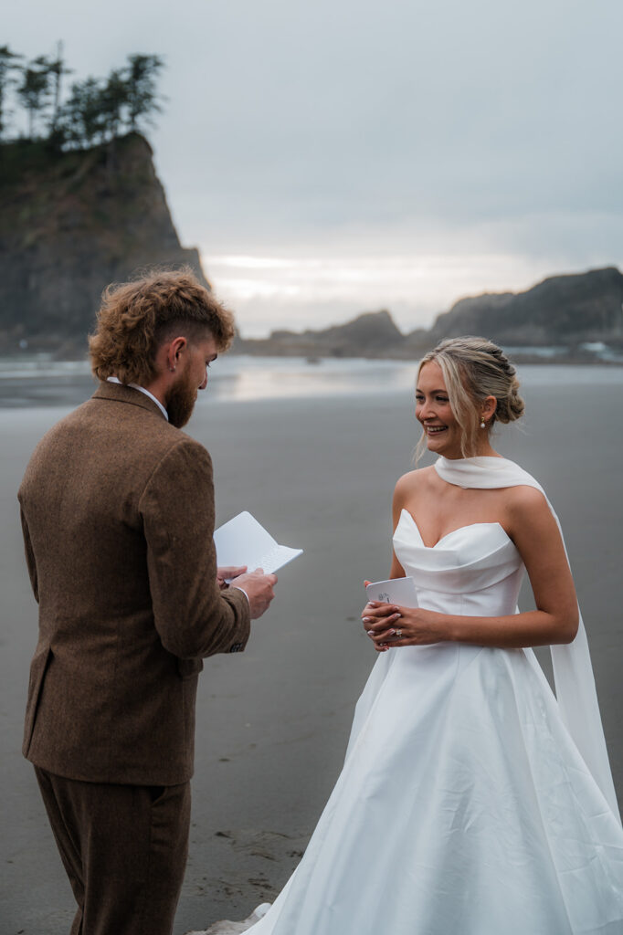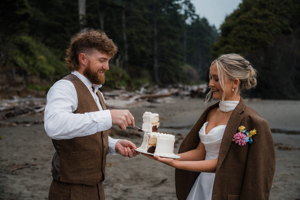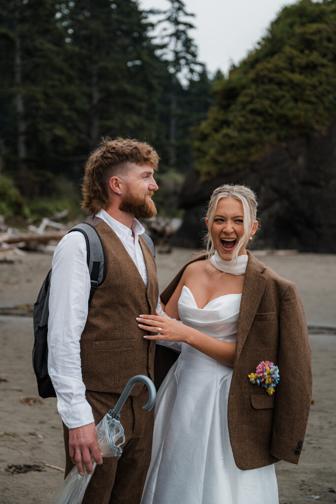 They started the morning getting ready near the Washington coast with their favorite people nearby. It felt relaxed and unrushed. Laughter filled the space while final touches came together. Before heading off for the day’s adventure, they shared a first look along the rugged coastline. The wind off the ocean, the quiet shoreline, and the soft light made it feel intimate and real.